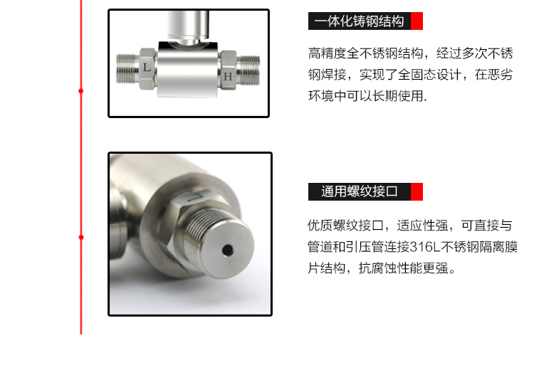SIN-6100系列一體化差壓變送器采用OEM硅壓阻式差壓充油芯體組裝而成。外殼為全不銹鋼結(jié)構(gòu),兩個(gè)壓力接口為螺紋連接,可直接安裝在測量管道上或通過引壓管連接。SIN-6100系列有標(biāo)準(zhǔn)電壓、電流輸出等可供選擇,可以很方便地安裝使用,廣泛應(yīng)用于過程控制,航空,航天,汽車,醫(yī)療設(shè)備,HVAC等領(lǐng)域的差壓、液位、流量測控等。SCN3