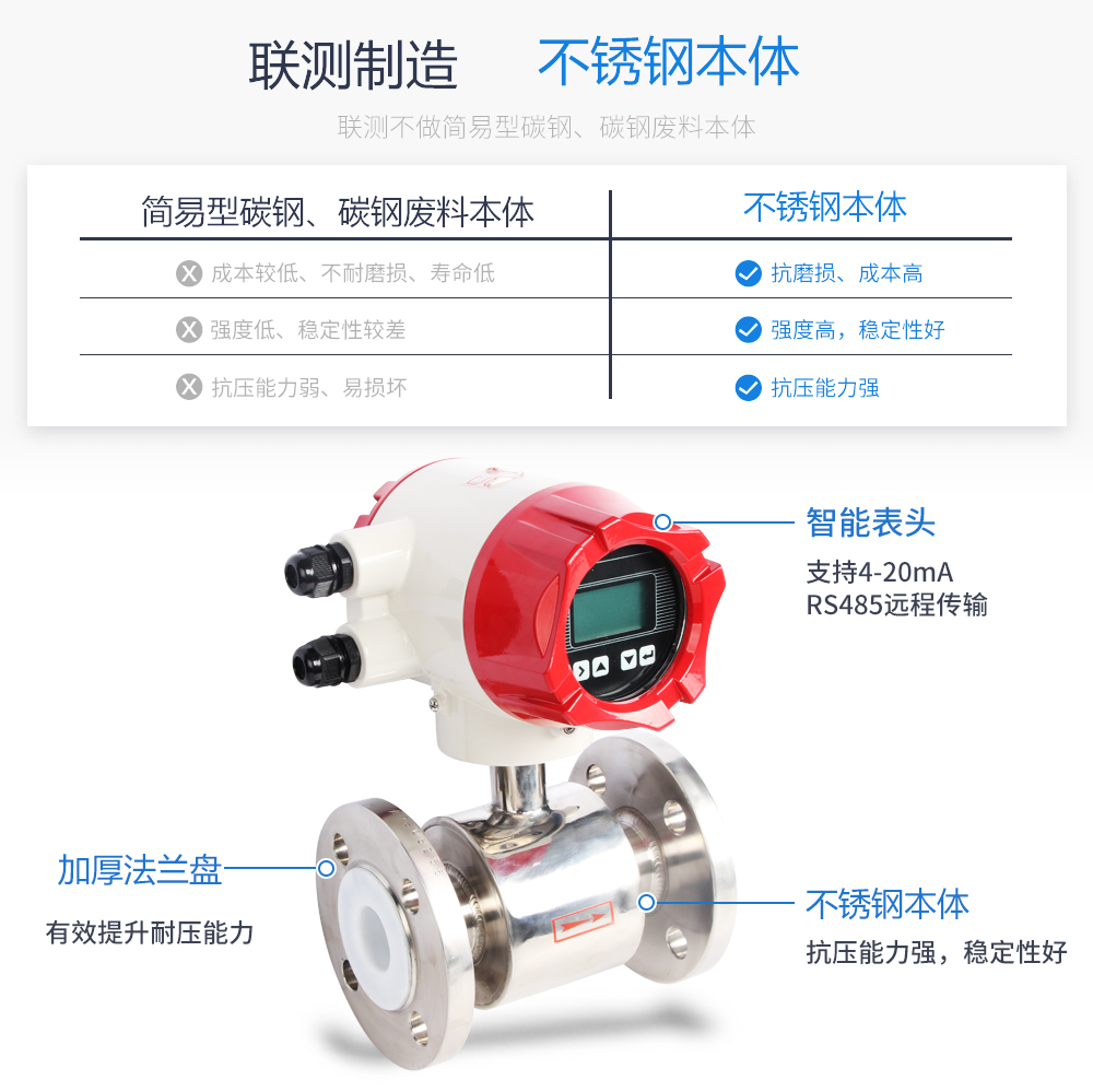 聯(lián)測(cè)LDG-SIN電磁流量計(jì)適用于化工助劑、海綿城市、給水排水、水利灌溉、水處理、污水處理(環(huán)保污水控制、化工污水、電鍍污水)、造紙漿液(紙漿)、泥漿、醫(yī)藥原料、食品等工農(nóng)業(yè)的生產(chǎn)公司過程流量測(cè)量和控制,標(biāo)配485通訊功能。