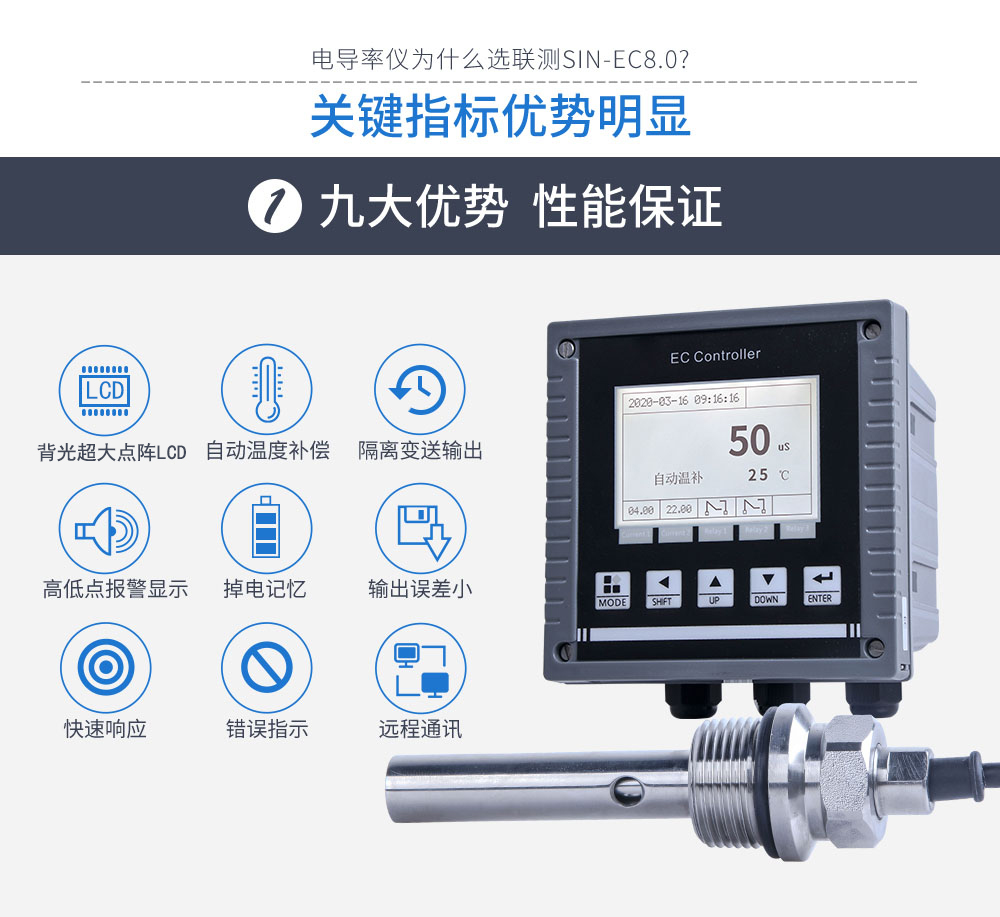 電導率電極專門用于純水、水處理等的電導值測量,特別適合火力發電廠和水處理行業的電導率測量。CN5