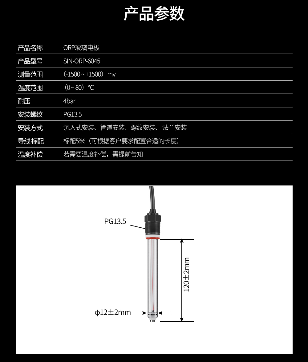 ORP 玻璃電極是我公司生產的一款性價比高的模擬信號 ORP 電極,該電極具有良好的穩定性和較長的使用壽命,能與各種國產或者進口儀表兼容匹配。廣泛應用于各種場合的 ORP 測量。CN1