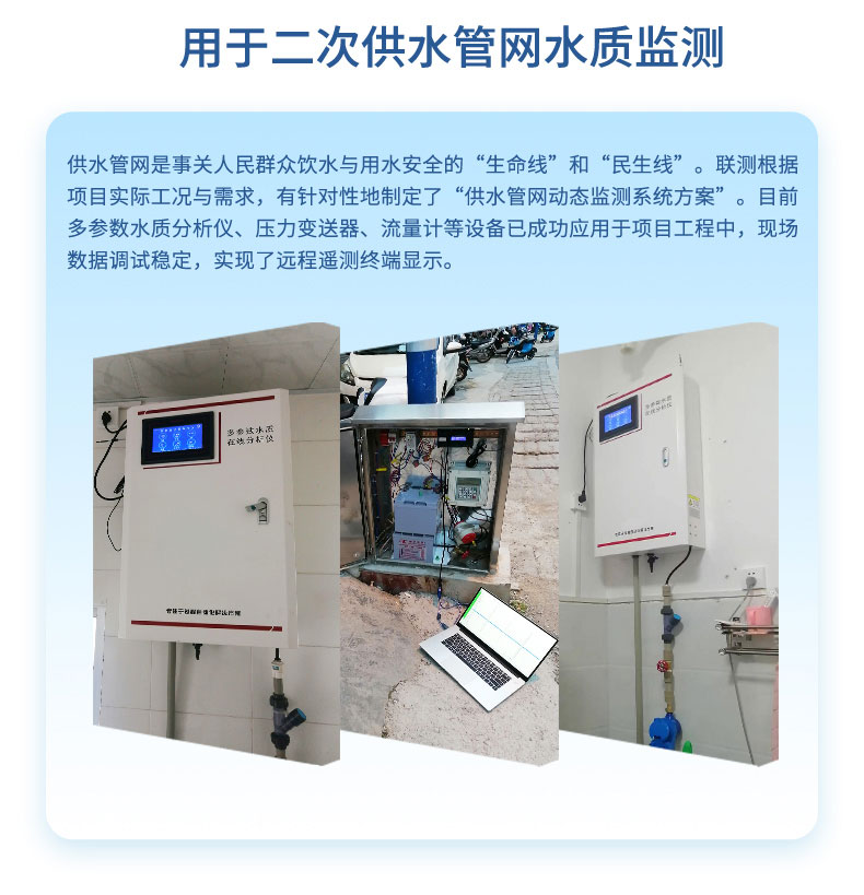多參數水質分析儀是本公司自主研發制造的新一代飲用水水質監測設備,該設備可廣泛用于自來水、地表水、地下水、水源水、飲用水、江水、河道、海洋、污水排放口等不同水體的水質在線監測。多參數水質分析儀監測參數包括溫度、pH、ORP、電導率、溶解氧、濁度、濁度和余氯等。可根據客戶需要,增加或減少監測參數。CN1