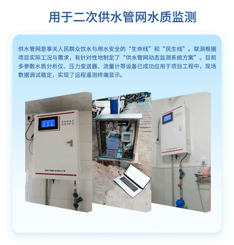 多參數(shù)水質(zhì)在線分析儀是本公司自主研發(fā)制造的新一代飲用水水質(zhì)監(jiān)測設(shè)備,該設(shè)備可廣泛用于城市或村鎮(zhèn)自來水廠、自來水輸水管網(wǎng)、自來水二次供水、用戶末梢、室內(nèi)游泳池、大型凈水設(shè)備和直飲水等水質(zhì)在線監(jiān)測,是水廠生產(chǎn)過程控制、水利水務(wù)管理、衛(wèi)生監(jiān)督等領(lǐng)域必不可少的在線分析設(shè)備。CN3