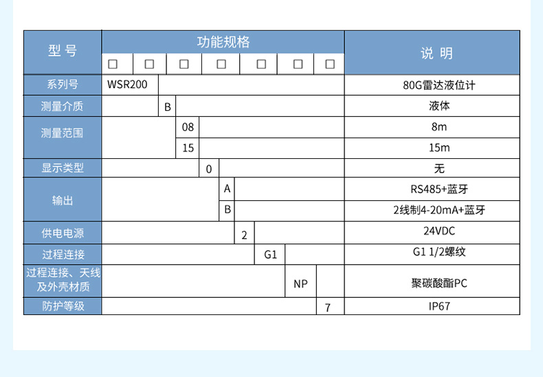 聯(lián)測_WSR200雷達(dá)物位計_80GHz_藍(lán)牙輸出_