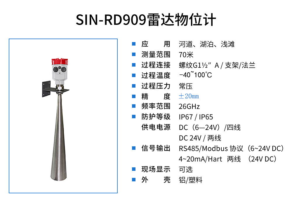 當前位置: 首頁 > 雷達液位計 → 聯(lián)測_SIN-RD909雷達液位計_0-70米水位_