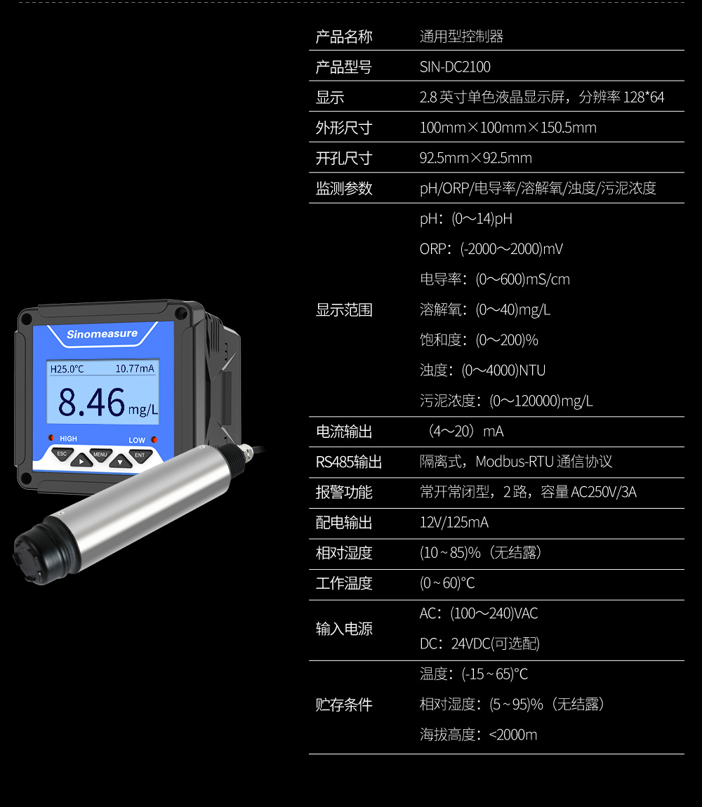 本產品為水質通用型控制器,適用于與本公司多種水質系列數字傳 感器配套使用,用于監測包括 pH、ORP、電導率、溶解氧、濁度、污泥 濃度等水質參數,監測的參數通過 RS485 或電流變送輸出到監控室進行 記錄保存。CN1