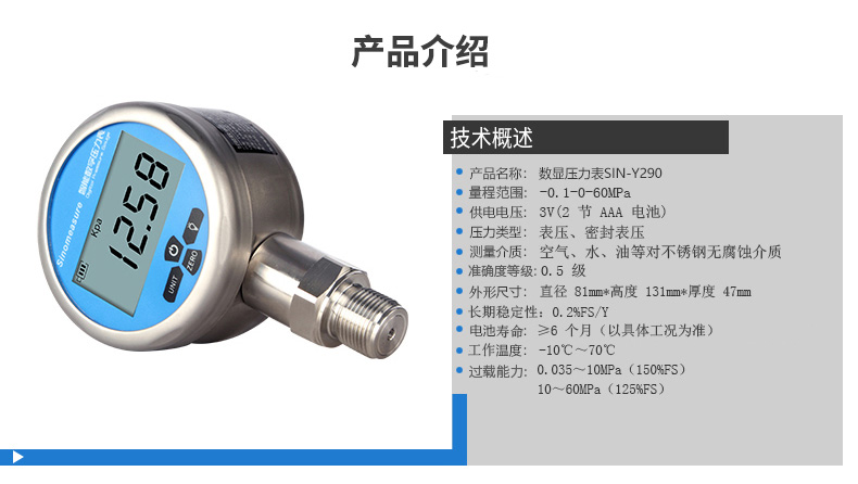 高精度數字壓力表,內置高精度壓力傳感器,能夠準確的實時顯示壓力,并且具有精度高,長期穩定性好的特點。CN6