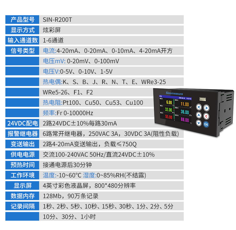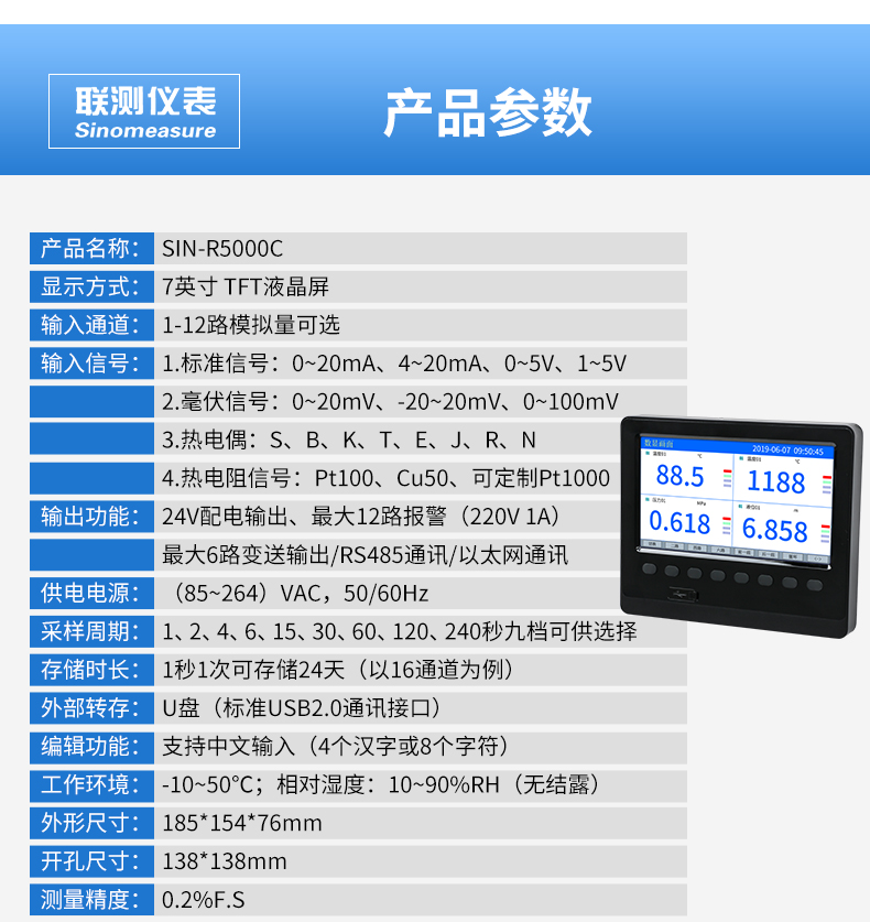 • 聯測_SIN-R5000C_1-12路可選_7英寸無紙記錄儀_溫度_壓力_多種參數