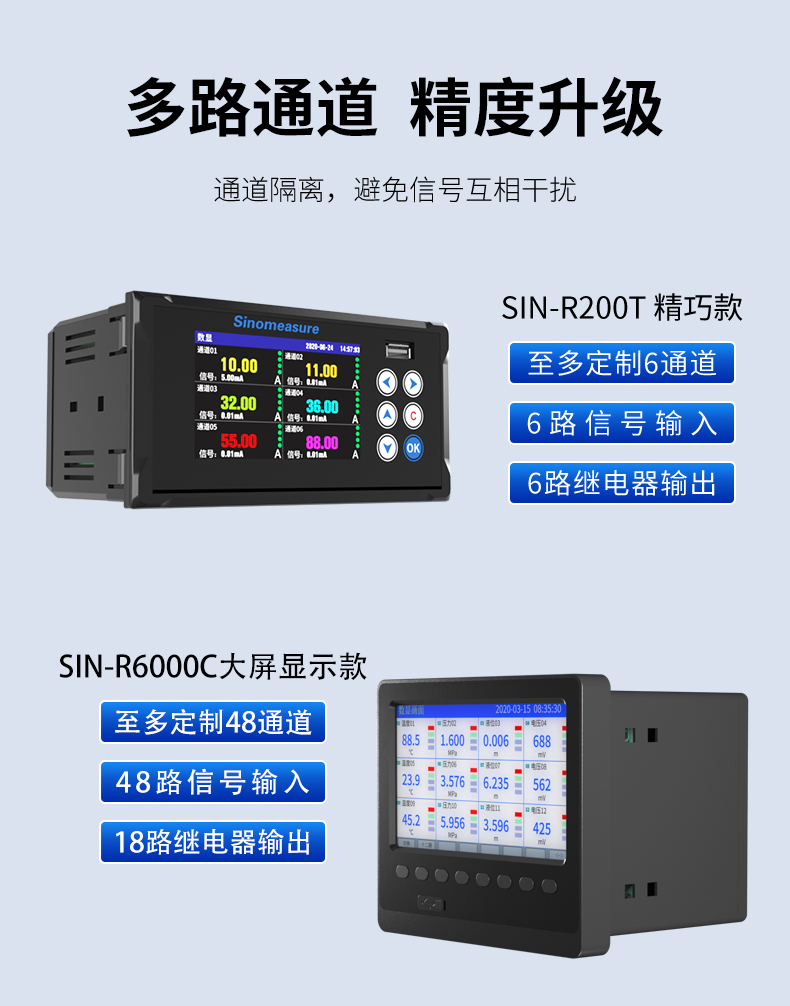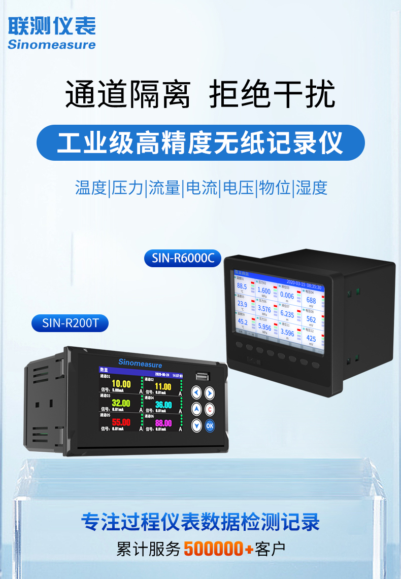 聯測_SIN-R6000C/4000C_1~48路可選_7英寸寬屏_彩色/藍屏_無紙記錄儀_溫度_壓力_多種參數_
