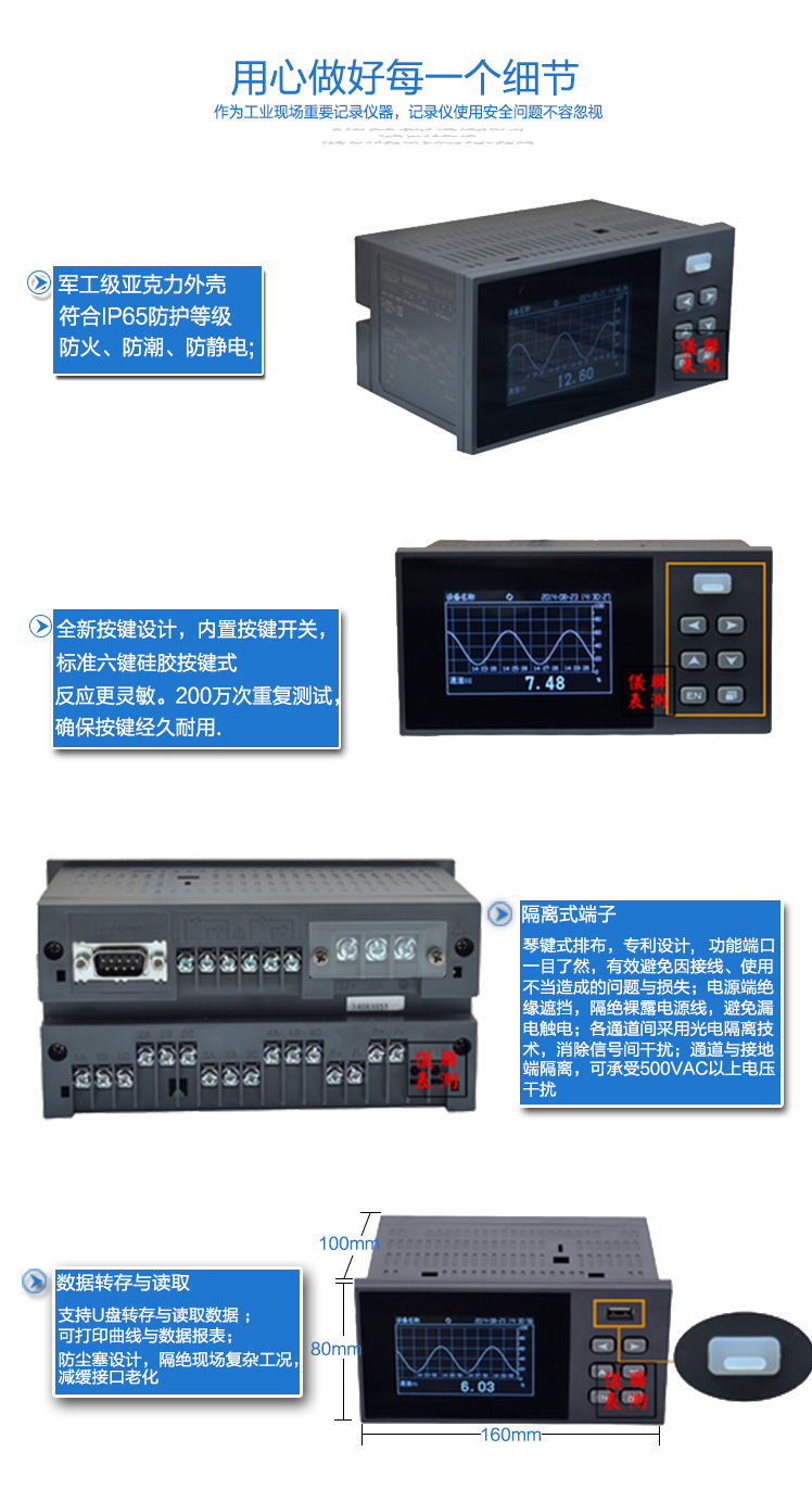 SIN-R200D系列無紙記錄儀可自由組態(tài)輸入標(biāo)準(zhǔn)電流、標(biāo)準(zhǔn)電壓、熱電偶、熱電阻、頻率等信號,可實(shí)現(xiàn)為傳感器配電和繼電器報(bào)警輸出,并且可通過U盤或通訊方式與上位機(jī)進(jìn)行數(shù)據(jù)交換。無紙記錄儀 本身具有實(shí)時(shí)數(shù)據(jù)顯示畫面、曲線顯示畫面以及棒圖數(shù)據(jù)顯示畫面,同時(shí),可以與微型打印機(jī)相連 接,實(shí)現(xiàn)現(xiàn)場打印功能,與聲光報(bào)警器連接,實(shí)現(xiàn)現(xiàn)場聲光報(bào)警功能CN4