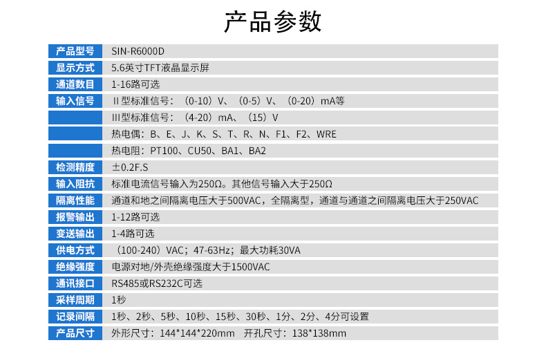 聯(lián)測(cè)_SIN-R6000D_1-16路可選_5.6英寸彩屏_無紙記錄儀
