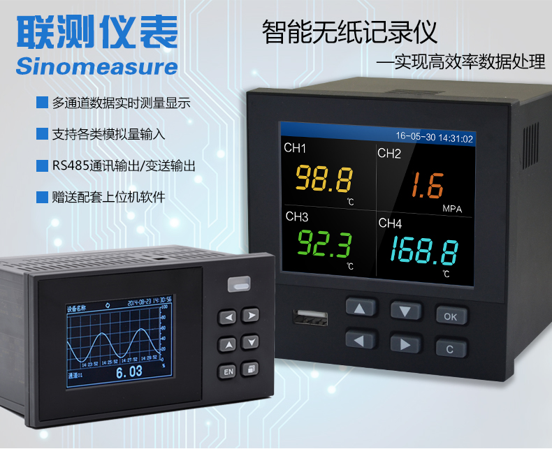 SIN-R9600無紙記錄儀內部采用高速、高性能32位cortex-M4微處理器。電路板經過“防腐、防潮、防塵”三防涂覆處理。高性能儀表電源有強大的抗干擾能力,能有效抑制外部諧波干擾,大大提高了整機的穩定性。CN5