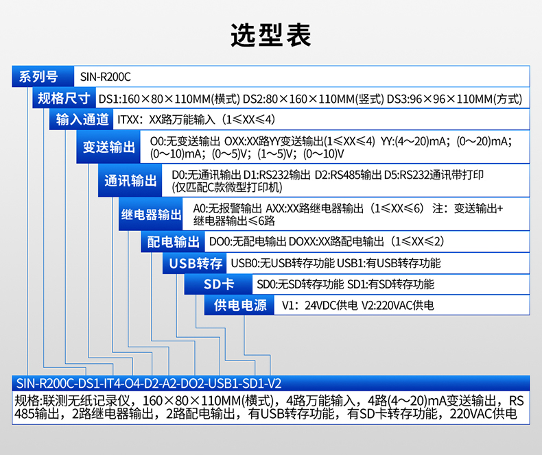 聯測_SIN-R200C_1~4路可選_96*96尺寸_無紙記錄儀_溫度_壓力_多種參數