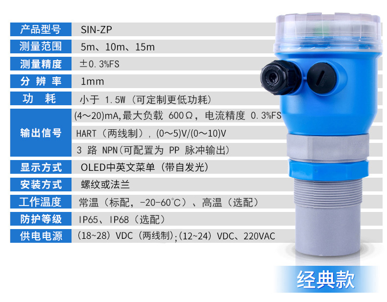 • 聯測_SIN-ZP_0.3%精度_超聲波液位計_罐體專用/小盲區專用_
