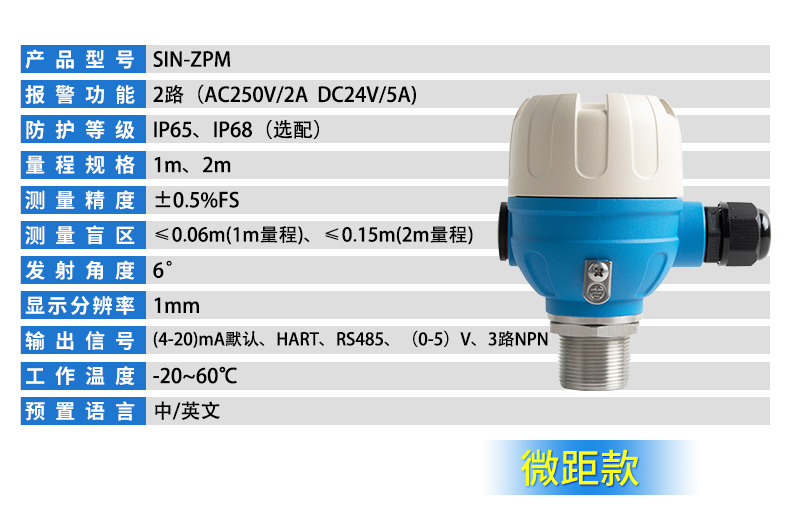 聯測_SIN-ZP_0.3%精度_超聲波液位計_罐體專用/小盲區專用_