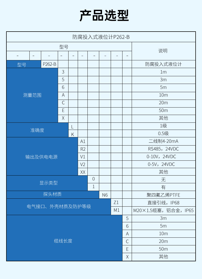 聯(lián)測_P262/P262-B防腐投入式液位計/水位計_陶瓷芯體_
