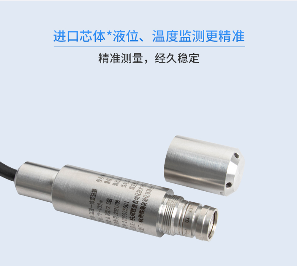 溫液一體變送器應用于工業領域流體的深度測量, 可將被測深度參數值轉換成RS485 標準信號,可與多種儀表相配套,可廣泛用于交通運輸、 石油、化工、冶金、輕工等領域。CN2